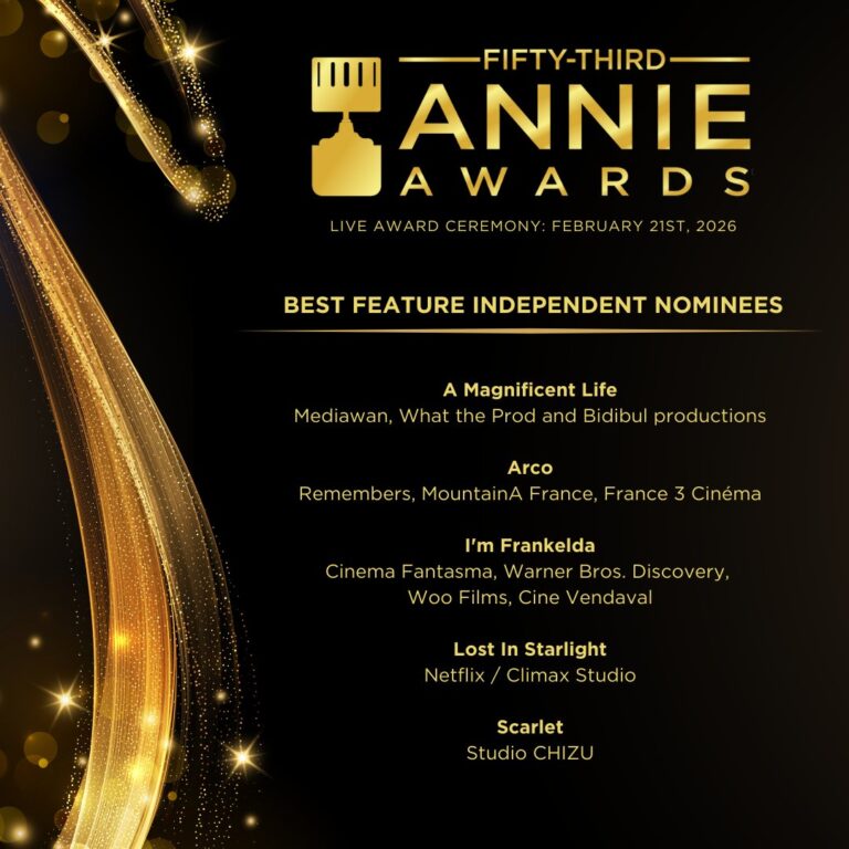 Presented by ASIFA-Hollywood, the 53rd Annie Awards will be held on Saturday, February 21, 2026, at UCLA’s Royce Hall with a live awards ceremony. For more information please visit http://annieawards.org.